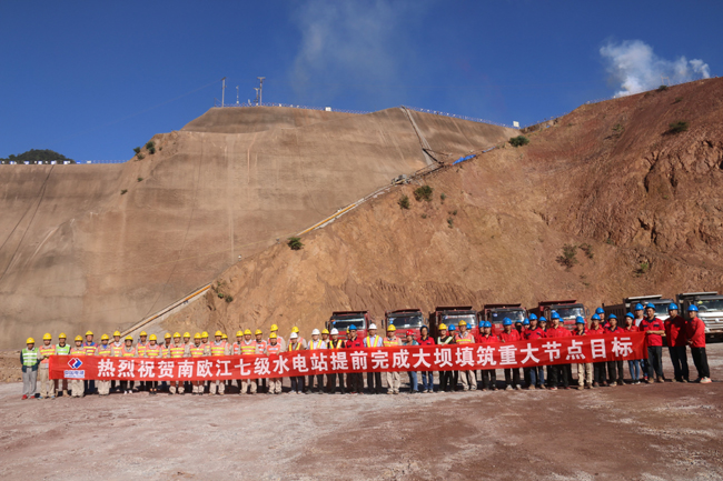 2018年12月23日,老挝南欧江七级电站传来喜讯,大坝填筑工程量达到356.33万方,且坝体全断面填筑至高程565米,比计划提前了8天完成主要节点工期目标。