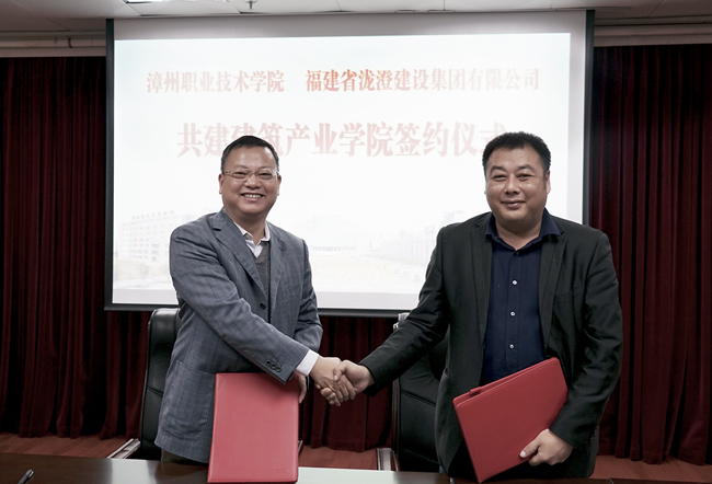 近年来,习近平总书记提出的经济发展新常态理论,对引领中国经济实现结构优化和动力转换,对各行各业产生了深远影响。当下,建筑产业转型升级已成发展所需、形势所趋,这些发展和变化对建筑类专业人才的知识、能力、素养和视野都提出了全新要求。福建省泷澄建设集团作为福建省建筑业龙头企业和漳州市唯一一家建筑特级资质企业,一直致力于为辐射带动漳州建筑行业提升和服务漳州社会经济发展。集团和漳职院签定合作协议,双方将以“优势互补、共谋发展、务实高效、互惠共羸”为原则,共建“泷澄建筑产业学院”,通过人才培育、合作办学、产学研合作、职业技能培训、实习就业等方面的深度合作,探索混合所有制校企“二元育人”人才培养模式。在习近平新时代中国特色社会主义思想的指引下,泷澄集团和漳职院携手努力,泷澄建筑产业学院必将立足漳州、服务行业,培养更多建筑设计、生产、施工、管理等高层次、应用型专门人才,为新时代经济社会发展做出新贡献。(建筑行业信息宣传工作通讯员:福建省泷澄建设集团有限公司 石仁俊 供稿)