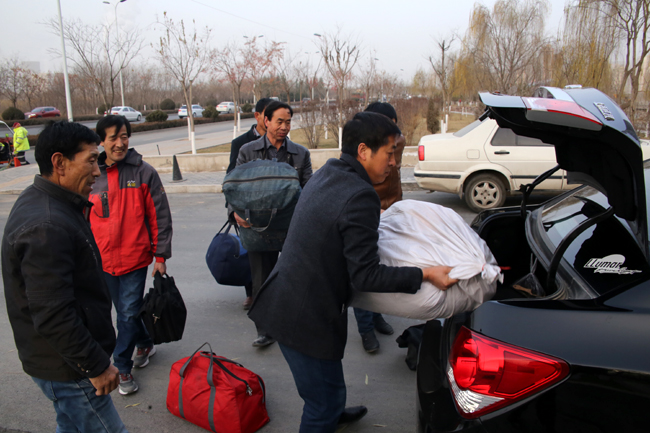 班长罗斌昌用自己的车把大家的大件行李装上拉到火车站,“带这么多东西坐公交车不方便,影响别人!”