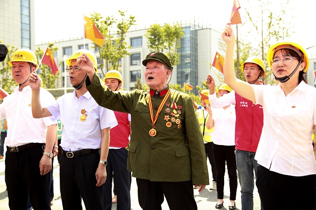 近日,陕建八建集团在中国西部科技创新港举行《我和我的祖国》快闪活动,活动邀请到集团85岁的离休干部薛世武,陕西省劳模、全国工程建设优秀项目经理、陕建集团改革开放40周年功勋人物等杰出代表,与工地的管理人员和农民工兄弟260余人歌唱礼赞我们的伟大祖国。