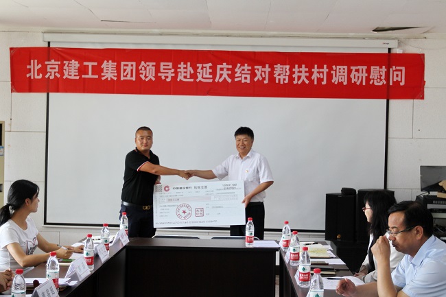 樊军一行首先来到下垙村村委会会议室就做好精准帮扶攻坚工作与区、乡和村“两委”领导进行了座谈交流。结对帮扶村党支部书记兼村委主任郭磊介绍了下垙村的低收入户、农村经济发展、支部建设等基本情况;四建公司派驻下垙村的“第一书记”王晓峰汇报了工作履职情况及下一步工作计划;四建公司党委副书记、工会主席李长晓汇报了四建公司党委精准帮扶工作开展情况及下一步工作计划;四建公司党委书记、董事长孙振泉代表四建公司向下垙村捐赠了10万元帮扶资金用于村民活动广场回填雨水冲刷沟壑,平整铺装、围立护栏,栽植花草等施工项目建设。随后,北京建工集团领导就做好精准帮扶攻坚工作,分别与区、乡和村“两委”领导进行了沟通交流,通过了解当地可利用资源和帮扶需求,探讨在有利于发挥企业优势的基础上可能的帮扶措施。樊军在交流发言中指出,积极参加“一企一村”精准帮扶工作,是北京建工作为首都国企的使命和担当,是对习近平总书记“小康路上一个也不能少”的具体落实。在总结已取得经验的基础上,北京建工将继续秉承“帮扶先扶志,扶志是根本”的原则,聚焦聚力帮扶工作的重点难点问题,不断加大与村、乡、区的协同联动,持续推动脱低成果巩固提升。要充分将引资和引智结合起来,将广大村民敢闯敢干的奋斗精神激发出来,努力探索形成符合该村实际的积极发展模式,走出一条脱低致富的幸福路。“一朝结对,永久结缘”,北京建工将充分发挥绿色智慧全产业链优势助力延庆建设,已实际行动交上一份满意的答卷。