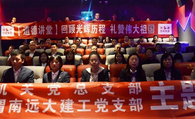 近日,陕建四建集团在渭南市临渭区信达苏宁影视城开展“回顾光辉历程 礼赞伟大祖国”主题党日暨“道德讲堂”活动。四建集团党委副书记、纪委书记、工会主席徐永宏,党委委员、副总经理惠志学,副总经理周伟出席活动。