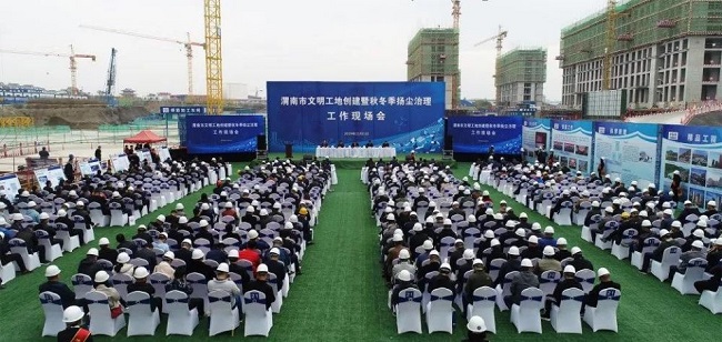 近日,“渭南市文明工地创建暨秋冬季扬尘治理工作现场会”在陕建四建集团双创基地项目顺利召开。