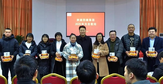 四建集团工会副主席、女工委主任成晓娟宣读了《陕建四建集团2020年元旦贺词》,与会领导向参加慰问活动的职工逐一送上糖果、瓜子等新年慰问品。