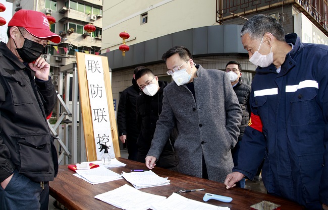 2月5日上午,陕建八建集团党委副书记、董事长、总经理、疫情防控领导小组组长章辉一行,来到该集团沙井村小区检查疫情防控工作,小区大门紧锁,检查组人员一一先测量体温、消毒,体温正常再登记才进入。物业人员每天会对院子公共场所进行无死角的3次消毒,筑牢小区第一道疫情“防火墙”,赢得群众好评。看到这个家属院上下严密布防、秩序井然后,章辉给予了肯定,代表集团疫情防控领导小组对全体工作人员的辛勤劳动和奉献精神表示感谢,叮嘱大家要继续严防死后,疫情不去不收兵,在做好疫情防控工作的同时,还要保护好自己。