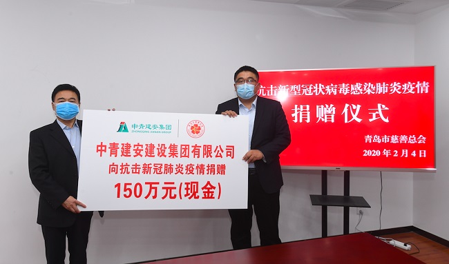 武汉疫情发展至今,牵动着社会各界的心,武汉人民和全国人民一同经受着巨大的考验。面对疫情,中青建安集团首批向青岛慈善总会捐赠50万元资金,今天,中青建安集团再次追加捐赠150万元,累计捐赠200万元,用于青岛市新型冠状病毒感染肺炎疫情防控指挥部办公室采购防护服、口罩、隔离衣、防护面罩等急需物资,以支援疫区肺炎疫情防控工作。