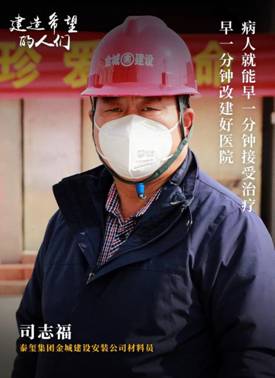 在各医院改建施工现场,像这样的人还有很多,他们或许朴实无华,或许平乏无奇。但是,却在关键时刻默默地扛起了担当的大旗,为疫情防控贡献一份自己的力量。