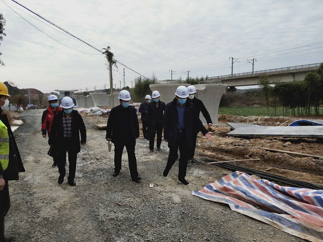 2月19日,中铁十一局二公司执行董事、总经理杨兵到湖杭铁路项目现场检查指导疫情防控和复工复产工作,协调解决项目复工中遇到的困难和问题,确保疫情防控和复工复产各项工作科学稳妥扎实有序推进。