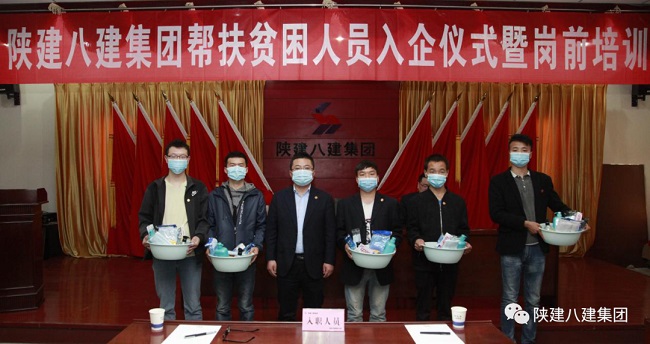 4月9日,陕建八建集团举办帮扶建档立卡贫困人员就业入企仪式暨岗前培训会。陕建八建集团党委副书记、总经理王勋出席会议并讲话,同时与集团副总经理刘宝军,工会副主席邵华分别为新入职人员佩戴司徽,发放生活用品。仪式由刘宝军主持。