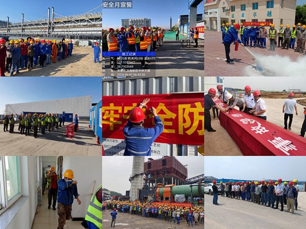 6月16日,天津滨海新区垃圾焚烧发电厂二期工程项目举行安全月启动仪式并组织工地消防和应急疏散演习。本次活动及消防演练的实施共分为:火灾逃生模拟、安全月启动宣传、安全施工宣誓、消防演练、业主安全部门领导进行安全教育、全体参与人员在安全月主题条幅上签名、演练现场清理恢复、对本次消防演练进行评估等阶段。通过本次活动,及时向项目人员传达了现场安全管理要求,明确了各级岗位和人员的安全责任,提高了项目人员灭火、疏散、自救能力和管理者火场组织协调、指挥能力,宣传了灭火器等消防器材的使用方法。