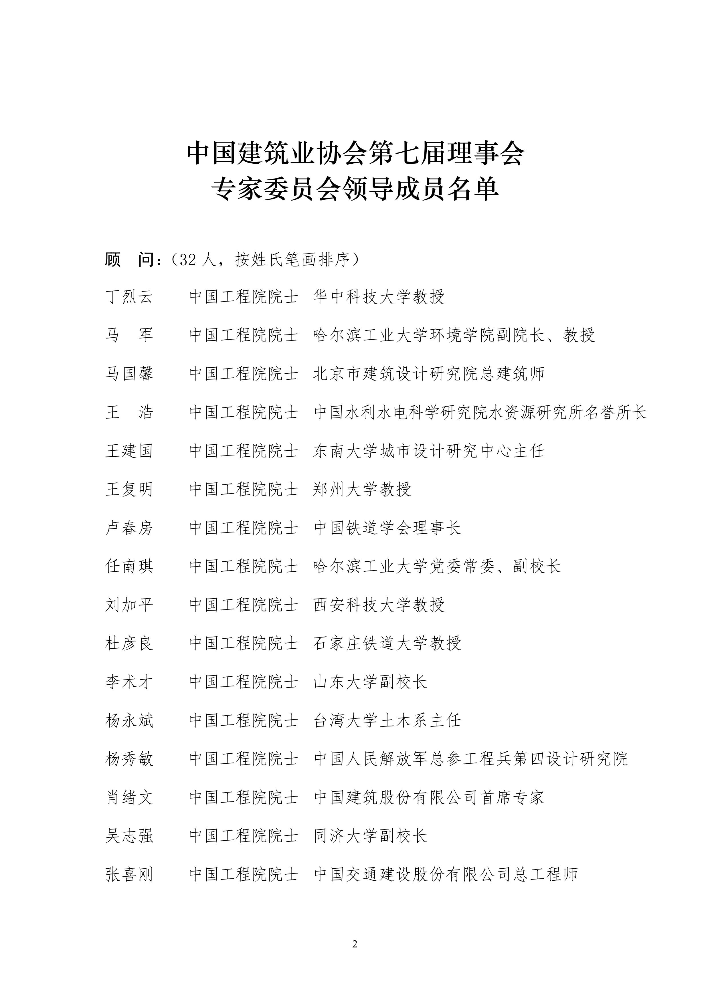 为贯彻落实科技强国、人才兴国和创新驱动发展战略,进一步提升中国建造水平,充分发挥工程建设行业专家作用,提高协会服务水平,按照《88038威尼斯检测中心章程》有关规定,经我会会长办公会研究,确定了第七届理事会专家委员会领导成员名单,现予以公布。