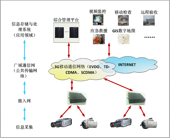 3G无线公网数据传输技术是第三代移动通信技术的简称,是指支持高速数据传输的蜂窝移动通讯技术,是一项全新的网络技术。3G无线网络还具有传输距离远、速度快、抗干扰能力强、无需铺设电缆、投资成本低等优势。随着宽带技术的不断发展,采用先进计算机通信技术及图像视频压缩技术为核心的网络化、数字化视频监控系统方案越来越得到人们的广泛使用。现在我们可以做到通过3G无线网络实现为施工现场的安全检查和质量验收提供视频图像和声音,同步实现数据的远程采集、传输、储存和处理功能。