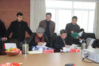 专家组组长叶可明院士与副组长艾永祥查阅工程资料