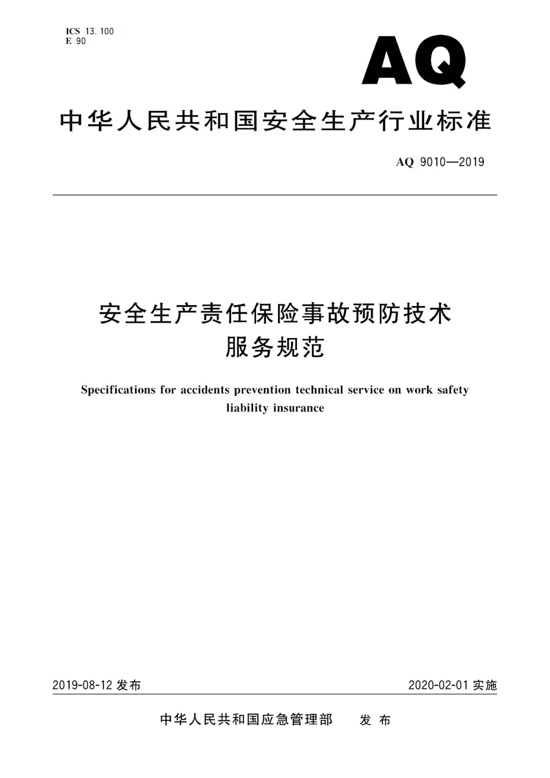 (AQ 9010-2019)安全生产责任保险事故预防技术服务规范