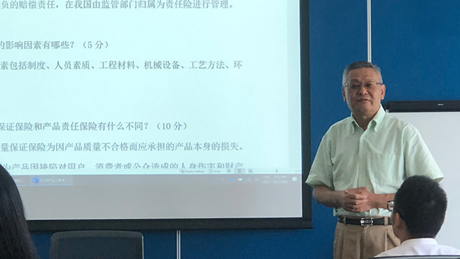 培训首日上午,法国再保险公司北京分公司CEO于巍东作了专题讲座,分别从风险与保险、保险分类、IDI产品起源与发展、IDI产品定义及特点、工程质量风险TIS五个版块对工程质量潜在缺陷保险进行介绍。在交流环节,学员们热情高涨,踊跃发言,立足岗位实际,分享了经验与心得。